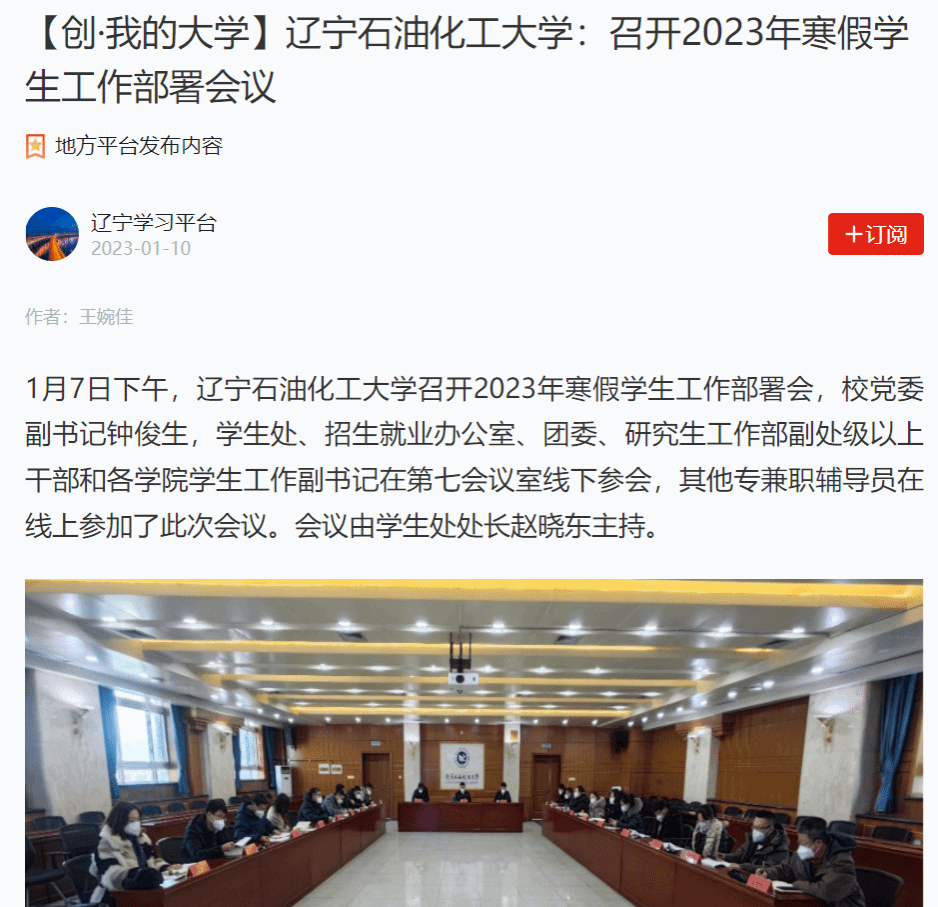 编者按:近日,学习强国辽宁学习平台、辽宁日报·北国号、人民日报客户端·人民号等媒体平台对我校召开2023年寒假学生工作部署会进行了宣传报道。现将相关报道转载如下: