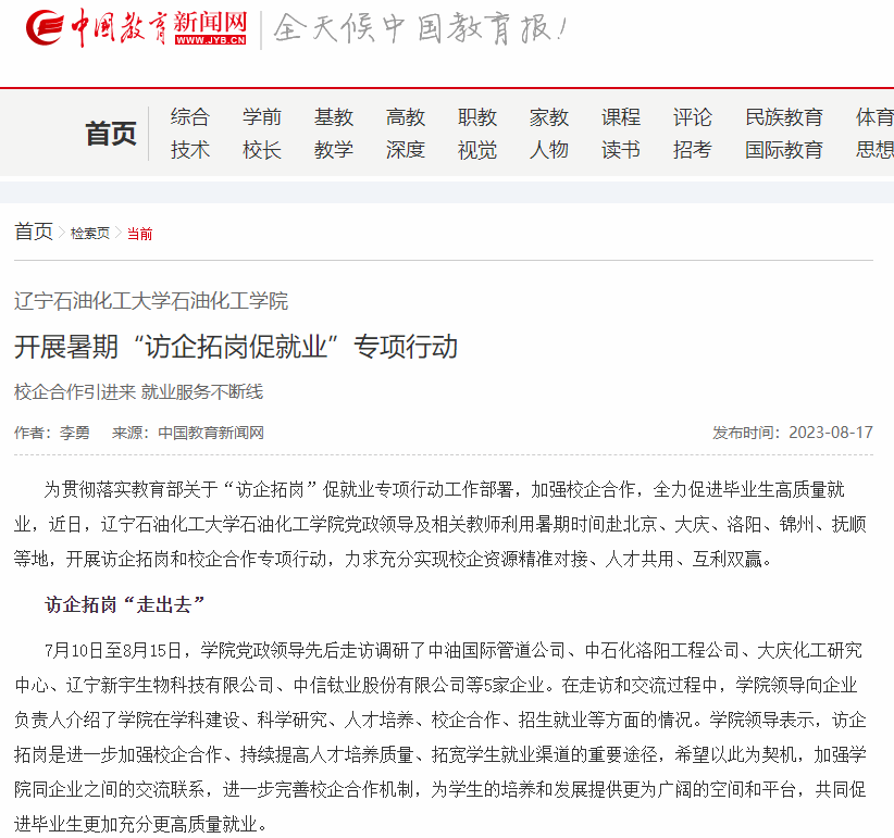 编者按: 8月17日,中国教育新闻网以《国产亚洲综合一区二区三区_亚洲欧美日韩中文天堂_尤物在线观看视频不卡无码_国产最新精品亚洲2025不卡_亚洲成Av人在线观看片水蜜桃石油化工学院开展暑期“访企拓岗促就业”专项行动》为题,对我校石油化工学院通过访企拓岗“走出去”、校企合作“引进来”,就业服务“不掉线”等多种形式全力促进毕业生高质量就业工作进行了宣传报道。现将相关报道转载如下: