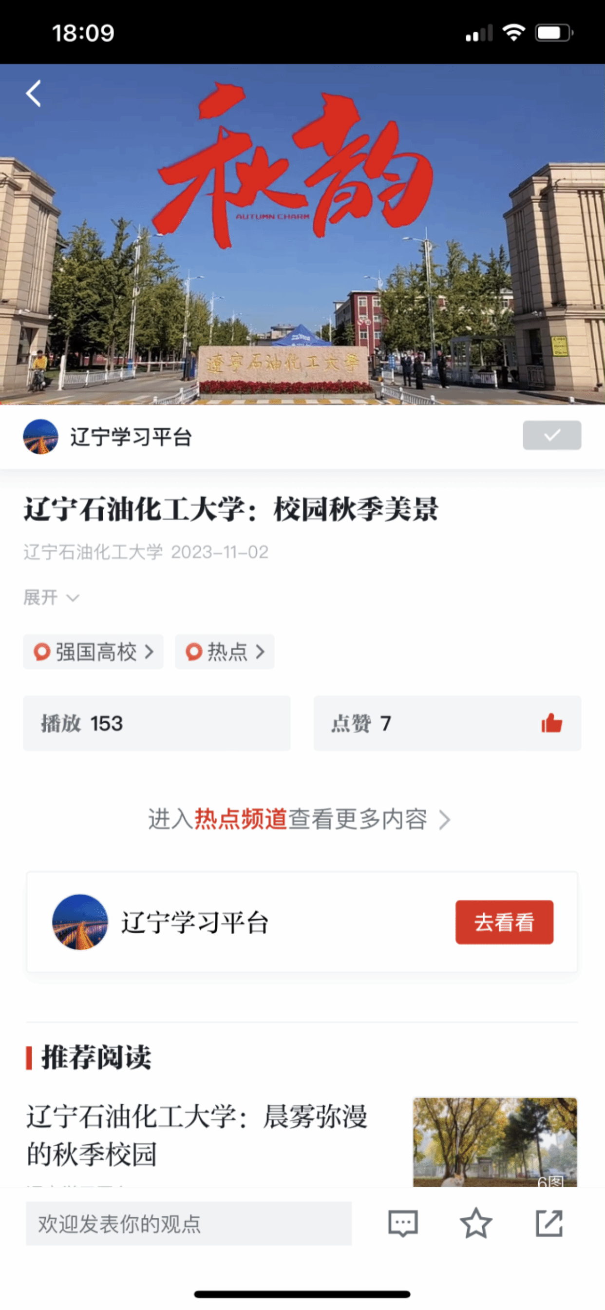 编者按:近日,学习强国主平台对我校宣传部制作的秋季校园美景视频进行了宣传报道。现将相关报道转载如下: