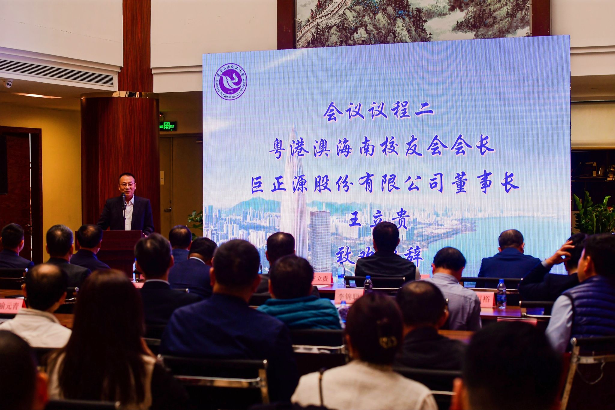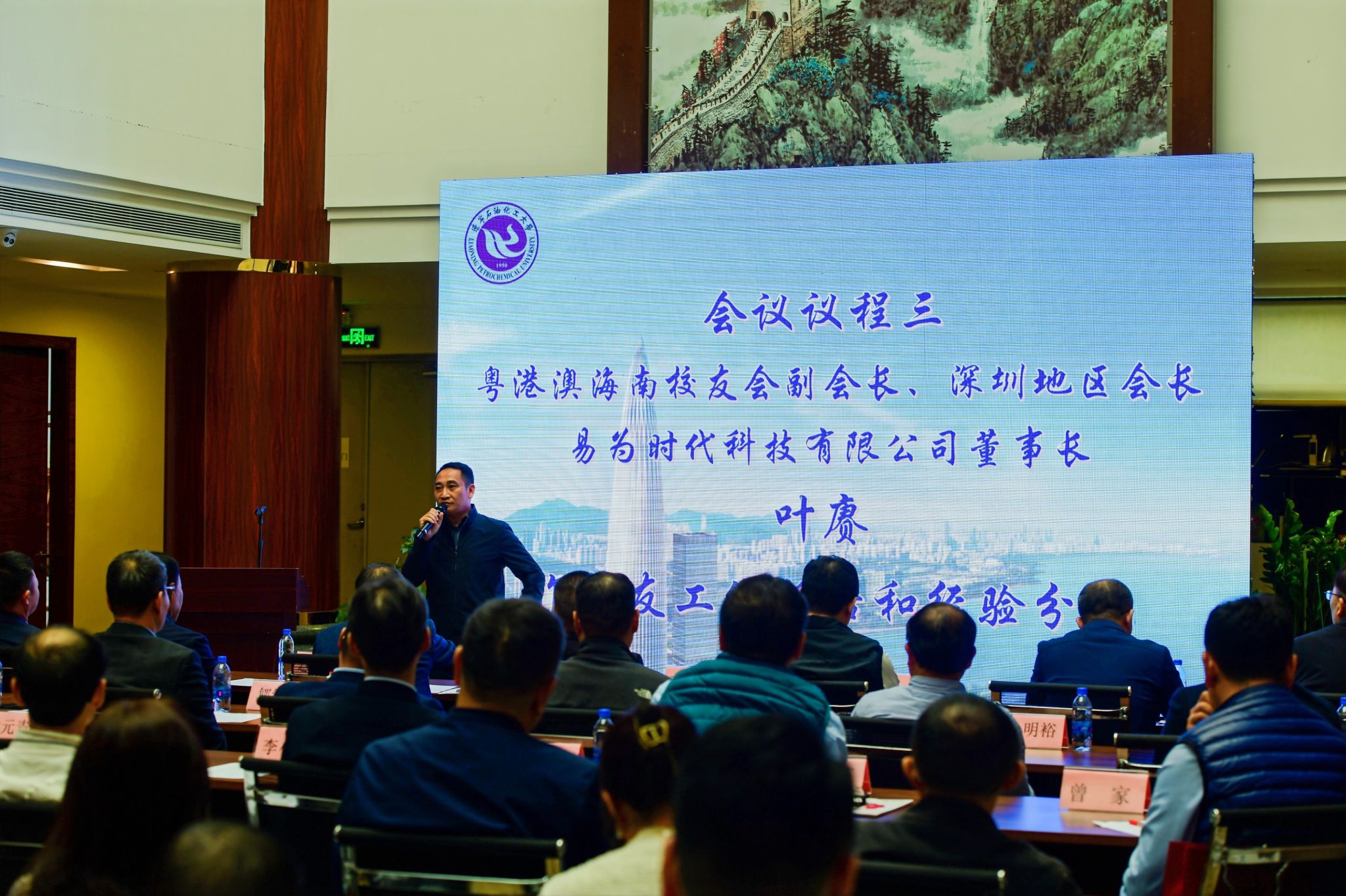 随后,粤港澳海南校友会副会长、易时代科技有限公司董事长叶赓作校友会工作报告。他全面回顾了粤港澳海南校友会的建立及发展历程,以及广大校友感恩反哺,以设立“粤港澳校友英才奖学金”、深化校企合作等方式助力学校发展的具体举措,表示将通过建强建优粤港澳海南校友会,进一步凝聚校友力量、助推校友事业,为母校建设发展增添新的荣光。