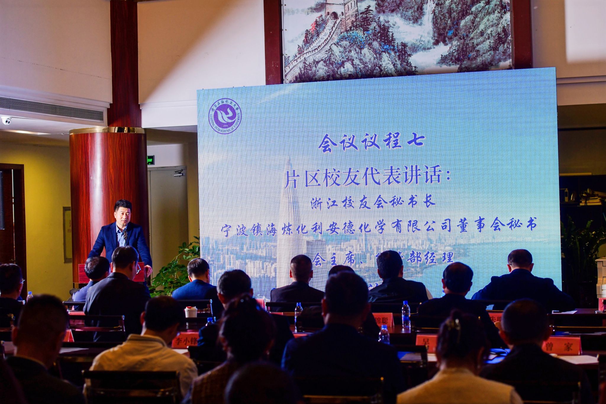 会上,浙江校友会秘书长,宁波镇海炼化利安德化学有限公司董事会秘书、工会主席、综管部经理刘治刚代表片区校友讲话,对本次大会的召开表示热烈的祝贺,感谢学校提供宝贵的交流合作机会,表示将全面汲取粤港澳海南校友会的建设经验,汲取与会成功校友的发展经验,进一步团结和凝聚浙江校友,在实现事业发展的同时深层次参与母校建设,助力母校建设特色鲜明的一流高水平应用型大学。