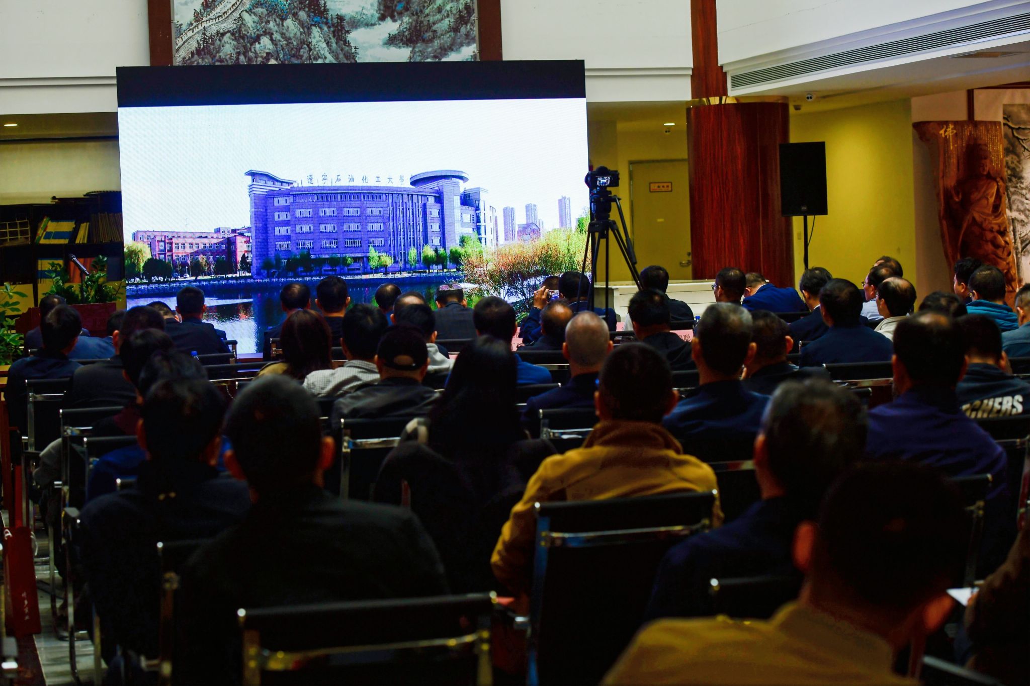 郭长义以“三个特点”“四个变化”“一个历史性突破”向广大校友介绍了学校近年来蓬勃发展的态势和办学育人取得的突出成果。他指出,学校是一所极具特色的学校,建校七十余载,历史悠久,育人成果丰硕;是辽宁省唯一学科专业覆盖石油化工全产业链的高校,行业根基深厚、优势明显;是秉持“用雷锋精神建校育人”办学理念的高校,通过大力学习“三个榜样”、弘扬“三种精神”,校园文化特色鲜明、有辨识度。近年来,学校深化教育改革、致力内涵发展,发生了“四个变化”,即环境变得越来越美丽了、师生幸福感越来越高了、综合实力越来越强了、政治生态越来越好了。特别是学校实现了一个历史性突破,在辽宁省内高校中率先破局地域困境,向海逐强,在天津建立滨海石化产业研究院,并努力将之打造成为高水平科研基地、高端人才引育基地、学生实习实训基地和企业员工培训基地。