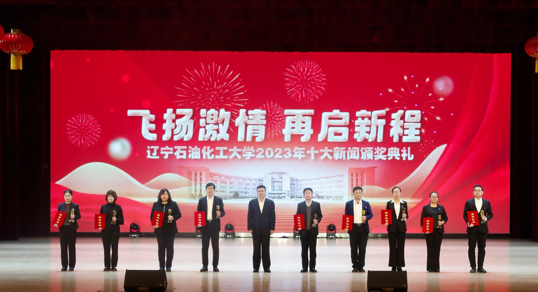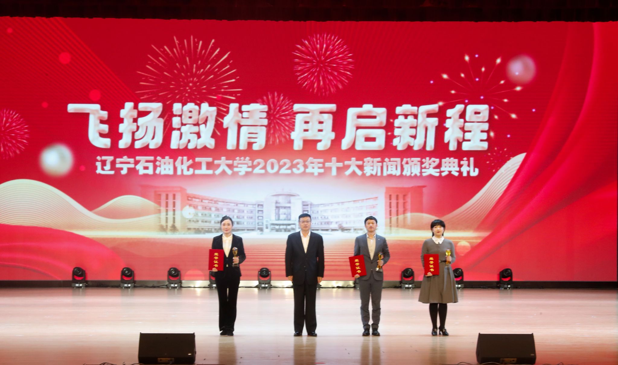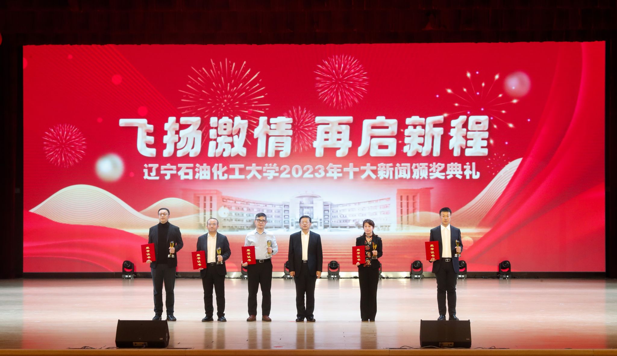 岁序常易,华章日新,学校十大新闻颁奖典礼至今已经成功举办了五届。带着2023年的辛勤耕耘与满满收获再启新征程,全体辽石化大人将继续稳中求进促提升,以进促稳谋突破,争分夺秒抓紧干,在加快推进特色鲜明的一流高水平应用型大学建设道路上赓续前行,奋力书写2024年辽石化大踔厉奋发、飞扬激情、团结筑梦、接续奋斗的崭新篇章!(撰稿人:娄永利 刘桓璐 校对人:陈雪峰 审稿人:雷冬海/张永利 摄)