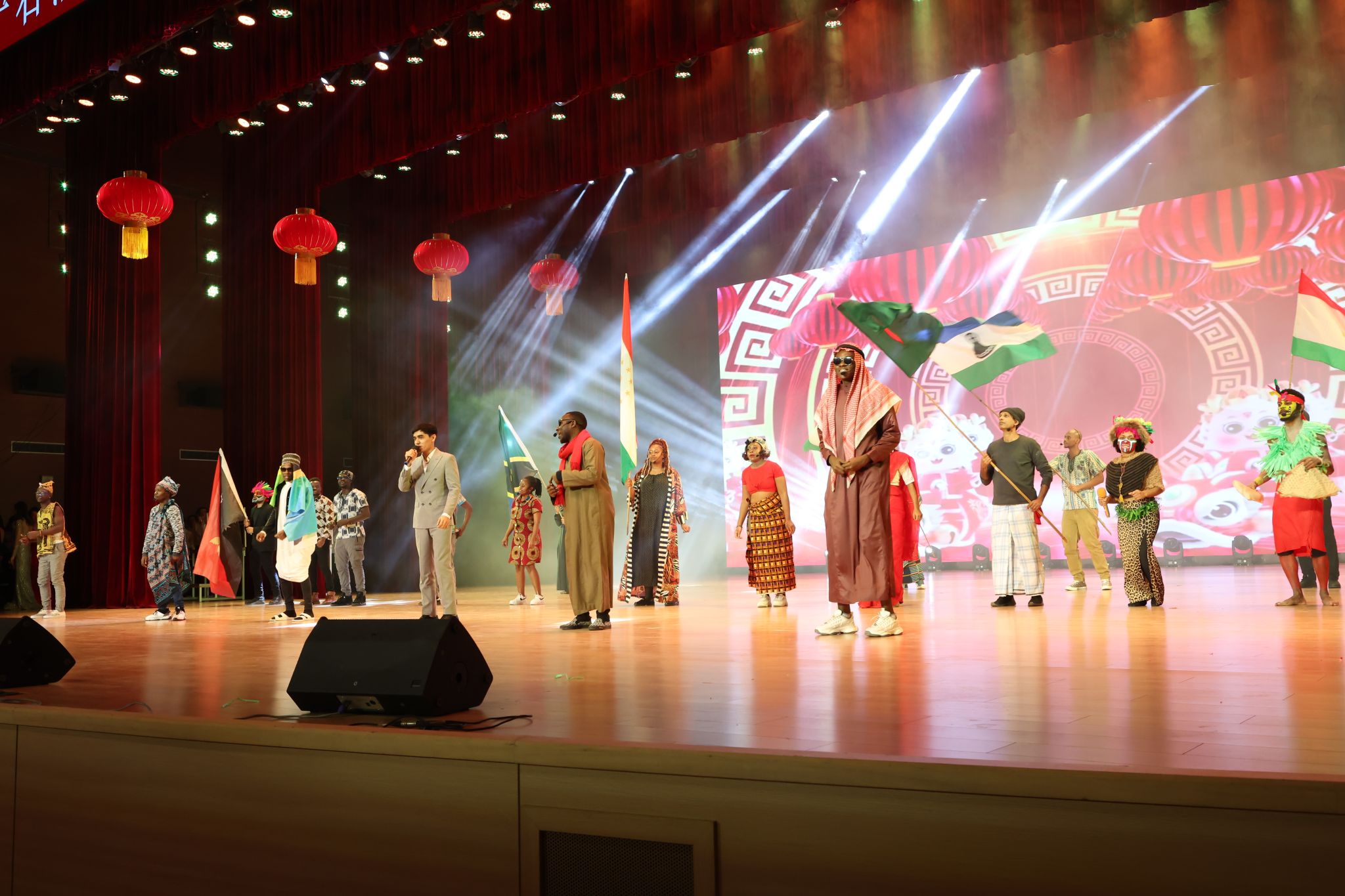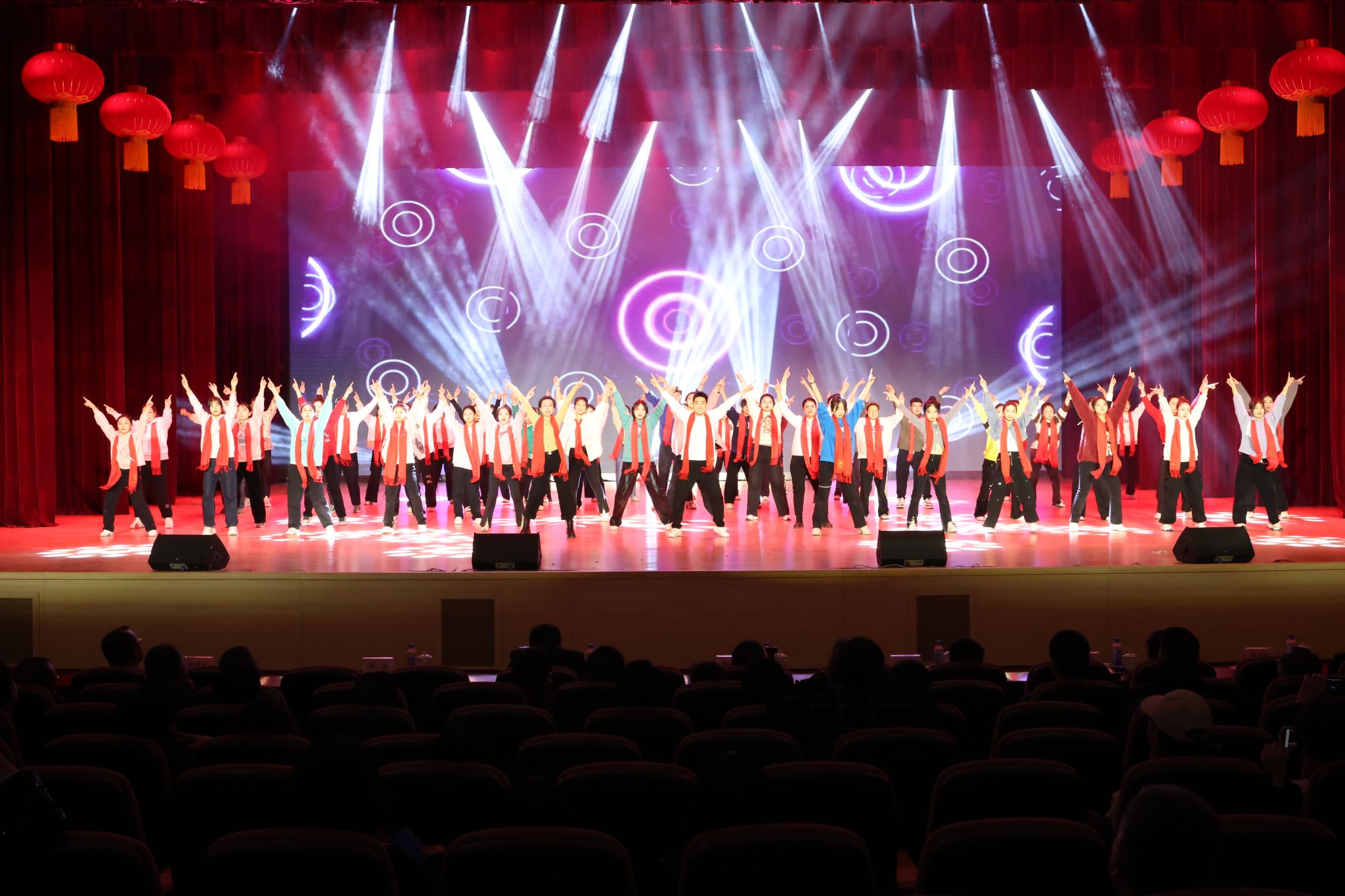 十大新闻发布后,由学校工会组织筹备、师生自编自演的十个精彩文艺节目将颁奖典礼的气氛再次点燃,颁奖典礼在《我们走在大路上》的乐曲声中圆满礼成。