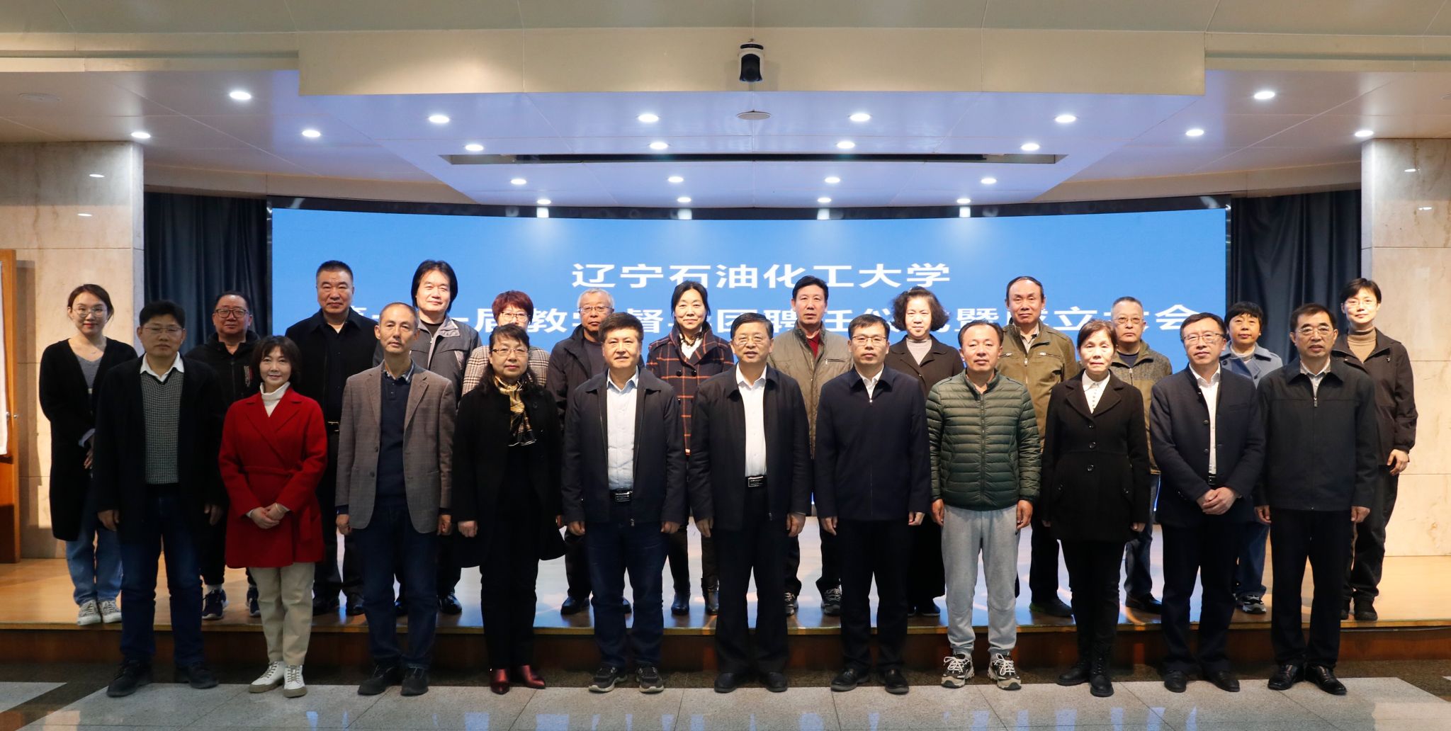 会议最后,第十一届教学督导团全体成员与校领导、相关职能部门人员合影留念。