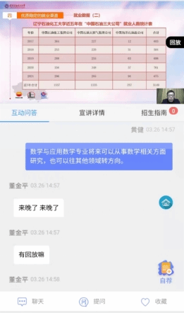 直播开始前,首先播放了学校招生宣传片。直播中,黄健老师分别从学校办学优势和特色、学校招生录取政策、辽宁省新高考招生政策、志愿填报方法和技巧等方面向考生做了全方位介绍;同时,还与考生进行了线上互动,在线解答了招生专业、新高考政策、志愿填报等相关问题,受到了广泛关注,进一步扩大了学校社会影响力与知名度。